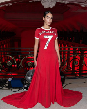 [풋볼리스트] 크리스티아누 호날두의 연인인 조지나 로드리게스가 특별한 유니폼으로 런웨이를 뽐냈다.조지나는 최근 파리에서 개최된 패션 위크에 참가했다. 조지나는 붉은 드레스로 모두의 시선을 이끌었다.조지나가 착용한 드레스는 세상에 단 하나 밖에 없는 의상이다. 바로 호날두의 등번호와 친필 사인이 담긴 드레스다.드레스 전면에는 호날두의 등번호인 '7'과 함께 그의 이름 'RONALDO'가 새겨져 있었다. 마치 축구 유니폼의 등번호를 연상시킨다.여기서 끝이 아니다. 드레스에는 호날두가 직접 쓴 것으로 추정되는 문장이 있었다. "내 인생의