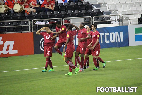 카타르는 스리백 전술이 가진 장점을 잘 보여줬다. 스리백으로 배후를 든든히 하면서도 라인을 높여 강한 전방 압박을 구사한 카타르는 공수 양면에 걸쳐 수적 우위를 꾸준히 유지했다. 전반 초반 알하이도스가 시도한 두 번의 슈팅이 허공을 가르며 정확성 문제를 겪었으나 기어코 선제골을 얻었다.