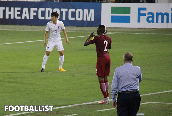 카타르는 후반전에도 좌우 윙백이 윙어 지역으로 올라와 강한 전방 압박을 통해 한국의 후방 빌드업을 괴롭혔다. 약속된 플레이를 보여주지 못한 한국은 시간이 흐를수록 포지셔닝이 엉켰다. 지동원과 한국영은 공을 중심으로 위치를 가리지 않고 달려들었는데, 공을 빼앗기고 나면 카타르의 논스톱 패스 플레이에 허망하게 뒷공간을 내줬다 후반 6분 타바타의 패스를 받은 아크람이 문전 우측에서 깔끔한 마무리 슈팅으로 추가 득점에 성공했다.