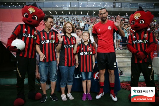 서울은 2일 서울월드컵경기장에서 한 ‘KEB 하나은행 K리그 클래식 2017’ 18라운드 전북현대 경기를 앞두고 반가운 손님을 맞았다. 얼마 전 한 TV프로그램에서 서울과 데얀을 좋아해 화제가 된 김은하수 양이다. 서울은 김 양과 가족들을 이날 경기에 초대했고, 김 양에게 시축을 부탁했다. 김 양은 꿈에 그리던 데얀 앞에서 시축했다.