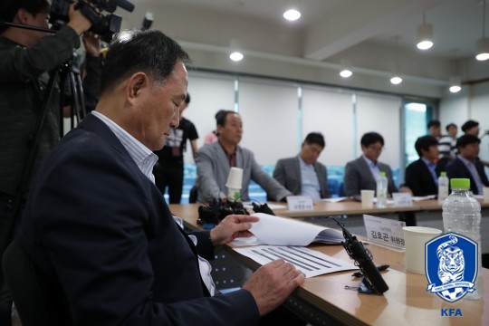 오전 9시에 2층 회의실에 8명의 새 기술위원이 모두 참석했다. 김호곤 위원장을 중심으로 기존 최영준(52, 협회 유소년 전임 지도자), 조긍연(56, 프로연맹 경기위원장), 하석주(49, 아주대 감독)와 신임 조영증(63, 프로연맹 심판위원장), 박경훈(56, 성남FC 감독), 황선홍(49, FC서울 감독), 서정원(47, 수원삼성 감독), 김병지(47, 전 국가대표 선수) 등이 모두 참석했다. 올해 제6차 기술위원회였다. 기술위는 오후 2시 발표 시점까지 5시간 여 토론을 진행했다.