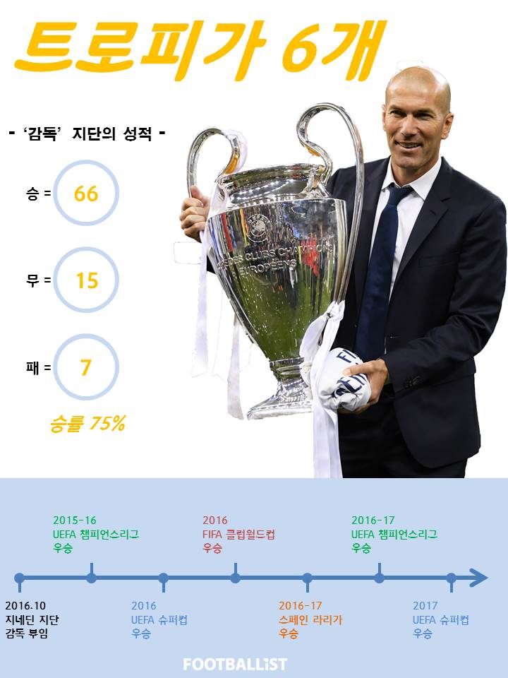 성공가도를 달리고 있는 지단은 이번 2017/2018시즌에도 레알과 함께 라리가 2연패와 챔피언스리그 3연패를 목표로 하고 있다.