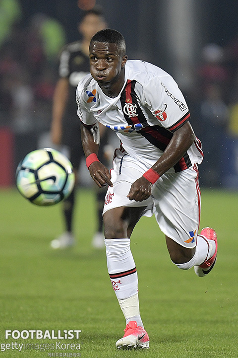 비니시우스는 지난 5월 레알 이적에 동의했다. 17세에 불과한 나이가 화제를 모았다. 브라질 U-17 대표팀에서 맹활약하며 주목받긴 했지만, 소속 클럽 플라멩구에서는 프로 데뷔조차 못한 유망주였다. 그런 선수가 4,900만 유로(약 659억 원)나 되는 이적료를 기록했다. 플라멩구에서 프로로 데뷔해 한 시즌을 소화한 뒤 2018년에 레알로 합류하는 계약이다.