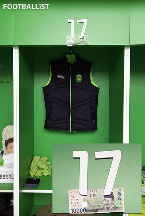 만 원을 준 주인공은 이재성의 대표적인 팬이자 ‘전북현대 후원의 집’ 중 한 곳을 운영하는 ‘사장님’이다. 올해 초 후원의 집 대표들을 초청한 클럽하우스 투어를 통해 라커룸을 방문한 ‘주영 이모’는 이재성에게 응원 메시지를 남기고 싶었고, 마침 수중에 있던 지폐에 메시지를 적어 자리에 꽂아 뒀다. 만 원을 먼저 발견한 김보경이 사진을 찍어 이재성에게 보내줬다. 그 뒤로 이재성은 이 돈을 건드리지 못하고 고스란히 남겨 뒀다. 이재성은 휴일에 이 팬의 직장을 깜짝 방문해 인사를 드리기도 했다. 일본 원정 경기를 찾아가던 이 팬과 이재성의 가족이 길에서 만나 여정을 함께 한 기억도 있다. 지폐에 적힌 문구대로, 이재성의 자리는 유독 정리가 잘 되어 있다. 꼭 필요한 물건이 아닌 건 만 원짜리 한 장 뿐이다.