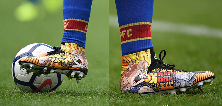 그는 N사 머큐리얼 베이퍼 슈퍼플라이 V를 착용하는데, 이 제품 오른발과 왼발에 각각 ‘드래곤볼Z’ 주인공인 손오공과 베지터가 그려져 있다. 손오공과 베지터는 각성한 ‘초사이이인’ 상태로 포효하고 있다.