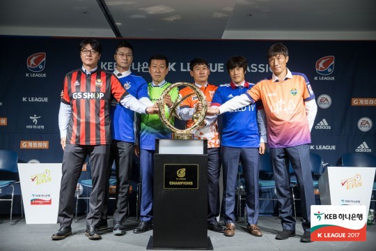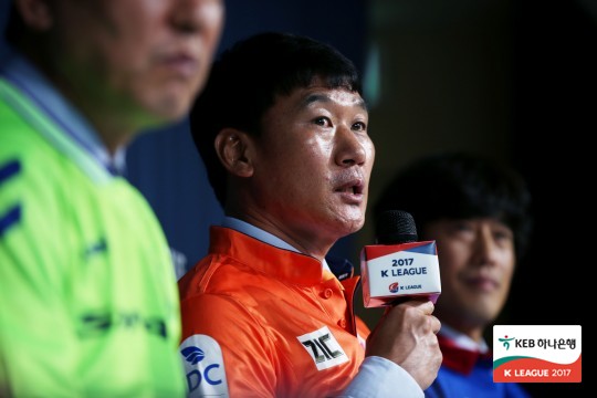 10일 서울 신문로에 위치한 축구회관에서 ‘KEB하나은행 K리그 클래식 2017 스플릿A 미디어데이’가 열렸다. 전북현대 최강희 감독, 제주유나이티드 조성환 감독을 비롯해 상위 스플릿에 오른 여섯 팀 감독이 참석했다.각 팀 감독들은 유니폼을 입고 기자회견장에 등장했다.