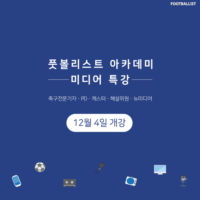 축구전문 컨텐츠기업 ‘풋볼리스트’는 오는 12월 4일부터 13일까지 총 10시간에 걸쳐 다양한 축구 관련 미디어 직종 실무자의 경험을 바탕으로 한 강좌 ‘풋볼리스트 아카데미X 미디어 특강 2기’을 개최한다.