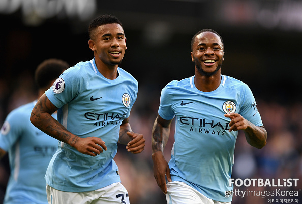 이번엔 다르다. 전반기도 마치기 전에 선수 10명이 리그에서 골을 넣었다. EPL 득점 순위 5위 안에 맨시티 선수가 3명이나 포진해 있다. 아구에로는 9경기 9골로 득점 2위, 스털링과 가브리엘 제수스는 8골로 득점 4위에 올라있다. 스털링과 제수스 모두 지난 시즌 득점 기록을 뛰어넘었다.