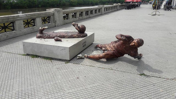 아르헨티나 방송 ‘텔레페노티시아스’는 4일(현지시간) “리오넬 메시의 동상 발목이 잘려나갔다”고 보도했다. 메시의 동상은 발목이 잘려 길바닥에 쓰러진 채 발견됐다.