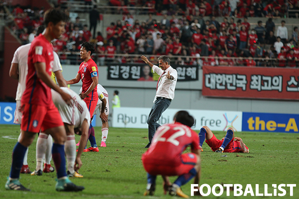 그 상징적인 장면이 8월 31일 이란전에서 나왔다. 신 감독 부임 후 첫 경기였다. 한국은 승점 획득이 절실한 반면, 이란은 ‘2018 러시아월드컵’ 본선행을 이미 확정한 상태였다. 한국 팬들의 성질을 긁곤 했던 카를로스 케이로스 감독은 ‘승자의 여유’로 한국을 너그럽게 대했다. 어찌 보면 싸움을 걸어 올 때보다 더 짜증나는 상황이었다. 경기 내용면에서도 한국은 ‘지는 것보다 짜증나는’ 양상을 겪어야 했다. 아직 신 감독의 색을 입지 않은 한국은 이란을 열심히 공략했으나 답답한 경기 끝에 0-0 무승부에 그쳤다. 이란은 후반 7분 한 명이 퇴장당했는데도 한국 공격을 다 막아냈다.
