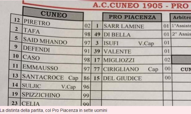 [풋볼리스트] 김정용 기자= 이탈리아 3부 리그에서 20-0 경기가 나왔다. 프로피아첸차 선수들이 사실상 파업을 하면서 생긴 파행 운영이다.