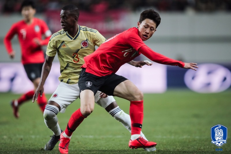 26일 서울 월드컵경기장에서 콜롬비아와 국가대표 친선경기를 가진 한국이 2-1로 승리했다. 전반 17분 손흥민, 후반 13분 이재성의 골이 나왔다. 콜롬비아는 후반 4분 루이스 디아스가 득점했다. 지난 22일 볼리비아를 1-0으로 꺾은 데 이어 2연승이다.