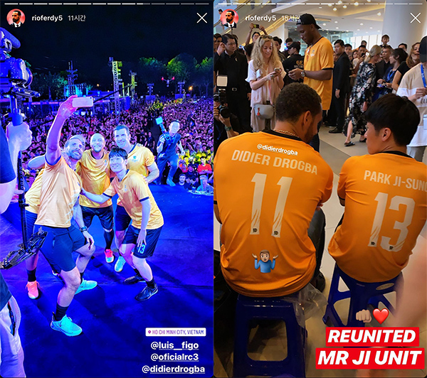 박지성은 지난 23일 베트남 호치민을 방문했다. 축구의 전설인 루이스 피구, 디디에 드로그바, 리오 퍼디난드, 호베르투 카를로스와 함께했다. 옛 동료인 리오 퍼디난드의 인스타그램에 인증 사진이 게재됐다.