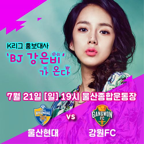 [풋볼리스트] 류청 기자= 울산햔대와 강원FC 경기에 K리그 콘텐츠 홍보대사로 활동 중인 BJ 강은비가 뜬다.