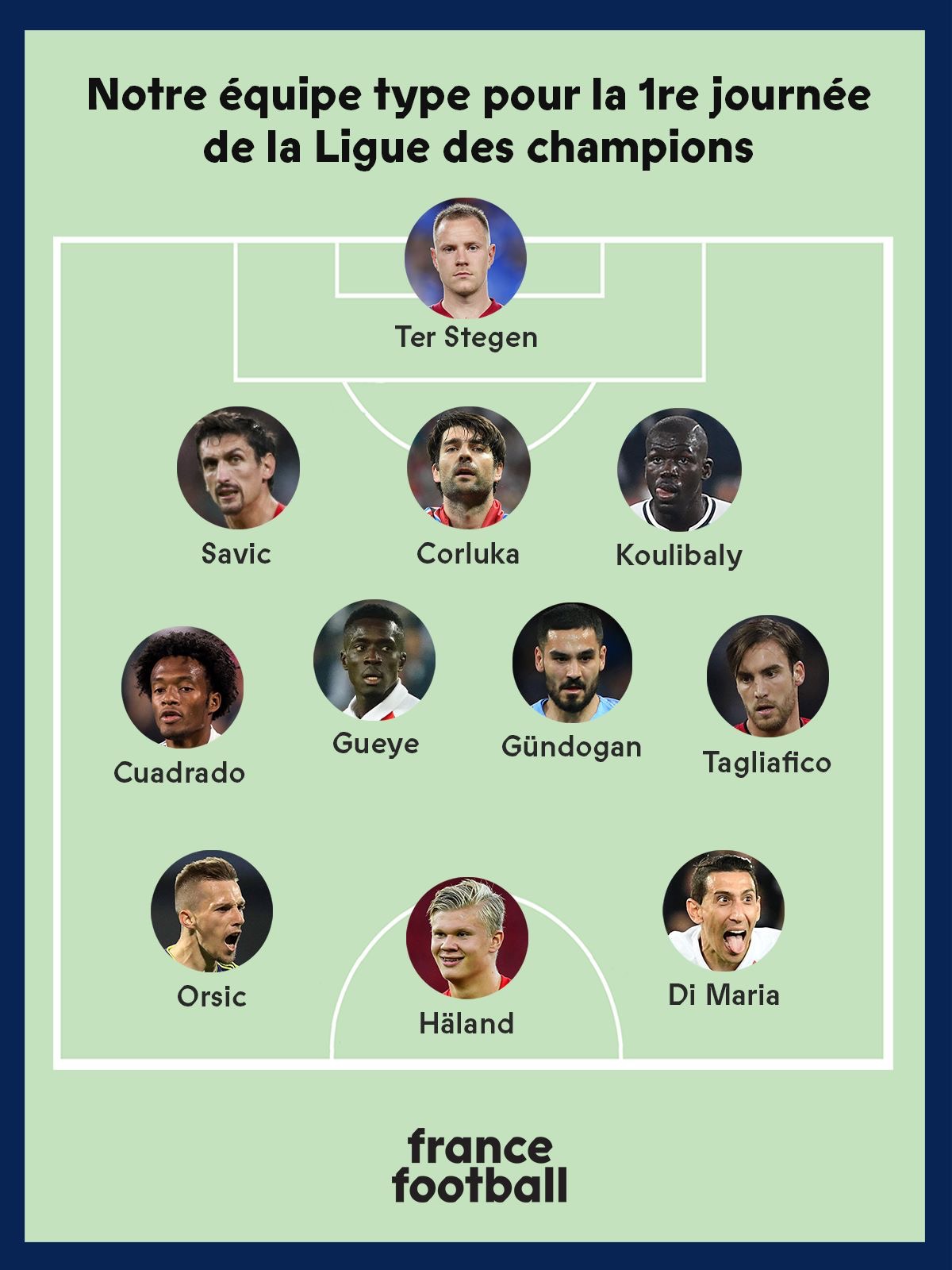 이 매체는 미드필더 4명에 후안 콰드라도(유벤투스), 이드리사 게예(파리생제르맹), 귄도안(맨체스터시티), 탈리아피코(아약스)를 선정했다. 3백은 사비치(아틀레티코마드리드), 베르단 촐루카(로코모티프모스크바), 쿨리발리(나폴리)로 꾸렸다. 골대는 마르크 안드레 테어 슈테겐(FC바르셀로나)에게 맡겼다.