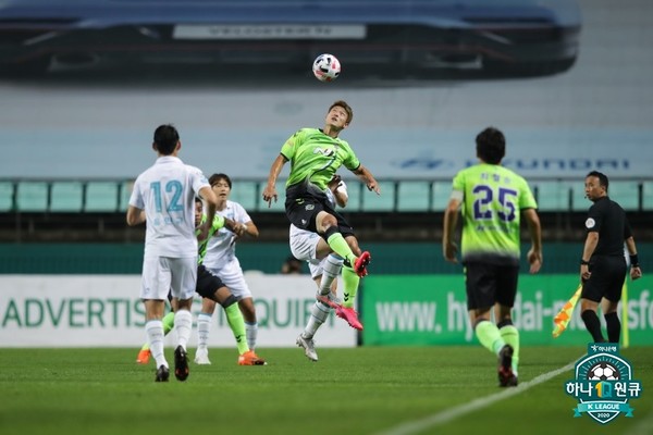 팽팽한 흐름을 전북이 깨뜨릴 뻔했다. 전반 30분 쿠니모토가 허리부터 최전방까지 절묘한 드리블로 전진한 뒤 왼발로 슈팅했다. 하지만 골문을 살짝 빗나갔다. 전반 32분 코너킥 상황에서 강현무의 펀칭이 짧게 떨어지자 쿠니모토가 슈팅까지 시도했지만 수비의 몸에 맞고 굴절됐다.