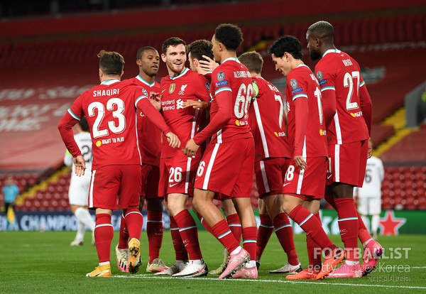 28일 오전(한국시간) 영국의 리버풀에 위치한 안필드에서 열린 2020-2021 유럽축구연맹(UEFA) 챔피언스리그 조별리그 D조 2차전에서 리버풀이 미트윌란을 2-0으로 꺾었다.