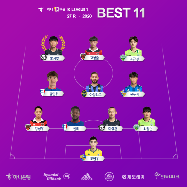 K리그1은 지난 10월 31일과 11월 1일에 걸쳐 마지막 27라운드 경기를 가졌다. 4일 한국프로축구연맹은 포지션별로 가장 활약한 ‘라운드 베스트팀’ 11명을 발표했다.