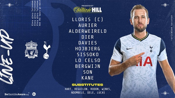 토트넘은 최전방에 해리 케인을 두고, 스티븐 베르흐베인, 지오바니 로셀소, 손흥민을 공격 2선에 세운다. 중원엔 피에르에밀 호이비에르, 무사 시소코가 출전하고, 포백은 세르주 오리에, 토비 알더베이럴트, 에릭 다이어, 벤 데이비스가 나선다. 골문 앞엔 위고 요리스가 선다.