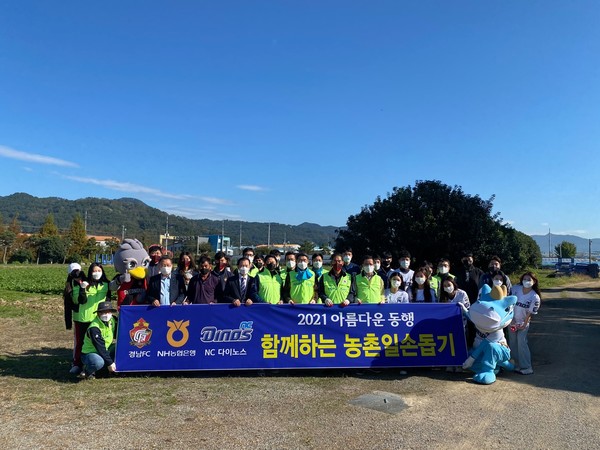 이번 농촌일손돕기는 경남FC, NH농협은행, NC 다이노스가 지역사회발전에 기여하고 기업의 공익적 역할 강화를 위해 공동으로 협약한「2021 아름다운 동행」의 두 번째 이행이다.