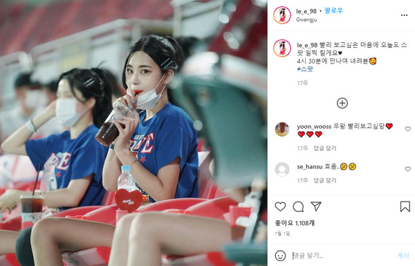 이이슬 치어리더는 자신의 인스타그램을 통해 "빨리 보고싶은 마음에 오늘도 스팟 일찍 킬게요♥️"라고 하며 "#스팟(해시태그 스팟)"을 덧붙였다. 팬들역시 그녀와 빨리 만나길 바란다는 댓글로 호응했다.