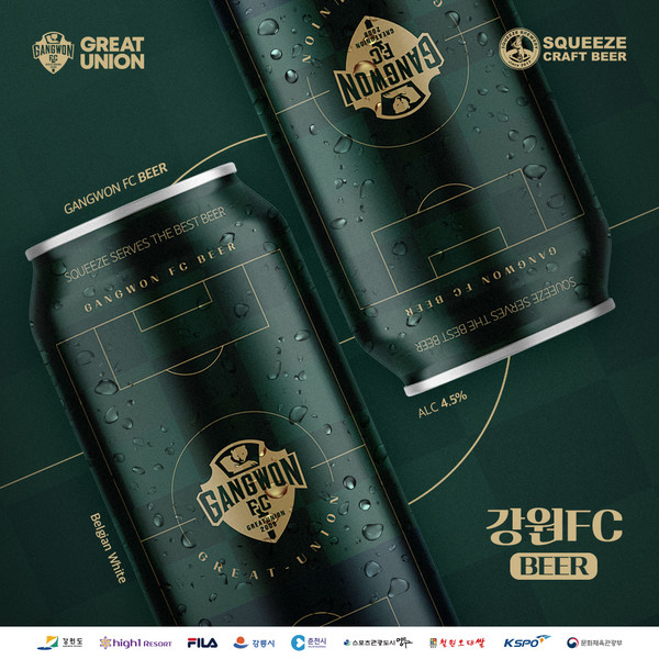 강원FC 맥주는 스퀴즈브루어리 기존 상품을 활용해 재탄생시킨 맥주다. 겉면을 그라운드 모양으로 디자인해 축구단의 정체성을 담았다. 벨기에 호가든 지방의 화이트 밀맥주로 효모 특유의 향과 함께 오렌지 껍질과 고수 씨앗의 향을 최대한 살려 풍부한 맛을 가진 것이 특징이다.