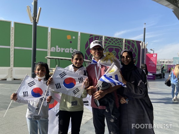 [풋볼리스트=도하(카타르)] 허인회 기자= 한 가족이 2대2로 찢어져 각각 한국과 우루과이를 응원하며 신경전을 펼쳤다.