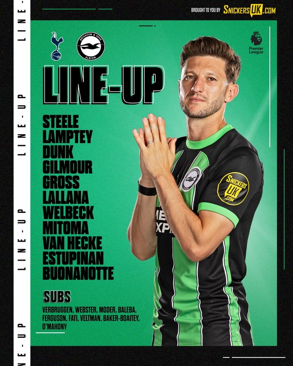 브라이턴도 선발 명단을 공개했다. 대니 웰백, 미토마 가오루, 파쿤도 부오나노테, 애덤 랄라나, 빌리 길모어, 파스칼 그로스, 페르비스 에스투피냔, 루이스 덩크, 얀 파울 판헤커, 타리크 램프티, 제이슨 스틸이 나왔다. 미토마가 선발로 나온 만큼 아시안컵에서 이뤄지지 않았던 한일전에 가능성이 생겼다.