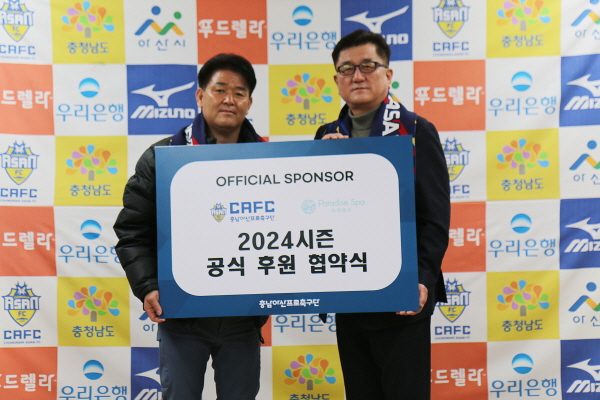 파라다이스 스파 도고 조태호 지점장은 “충남아산과 창단부터 인연을 이어오며 지속적인 업무협약 및 교류를 함께해서 기쁘다. 2024시즌 좋은 경기력과 지역사회 발전에 보탬이 되도록 노력하겠다”라고 화답했다.
