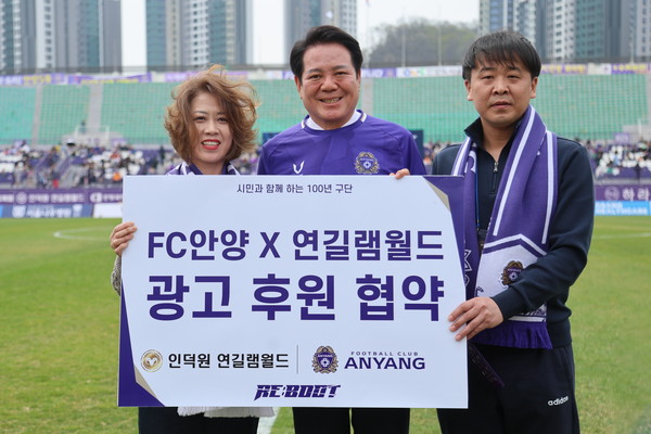 FC안양 신경호 단장은 “후원업소에서 후원 규모를 늘려 후원사로 확대된 사례는 처음이다. 연길램월드에 감사한 마음을 전한다. 좋은 경기력과 마케팅으로 보답하겠다”고 전했다.