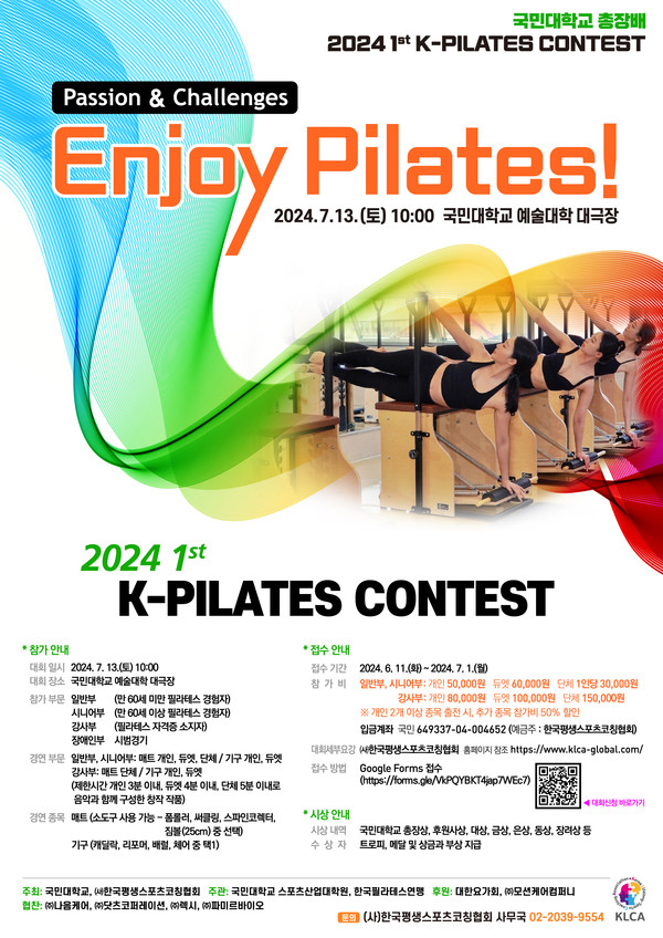 [풋볼리스트] 황명철 기자= 국민대학교와 한국평생스포츠코칭협회는 ‘2024 제1회 K-필라테스 콘테스트’를 7월 13일(토) 국민대학교 예술대학 대극장에서 공동개최한다고 밝혔다.