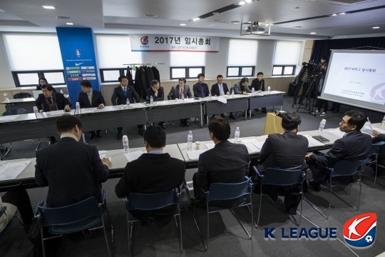 임시 의장은 연장자 자격으로 정병일 인천유나이티드 대표이사가 맡았다. 전 사장은 자리한 임원들에게 권 총재 후보 선출 이의 의사를 물었다. 반대하는 이는 없었다. 권 총재는 예상대로 새 총재로 선임됐다. 이사회는 30여 분 만에 끝났다. 임기는 4년이다. 현장에 권 총재는 없었다. 개인적인 업무로 현장을 방문하지 않았다. 때문에 총재 본인에게 향후 계획 등에 대해 물을 수가 없었다.