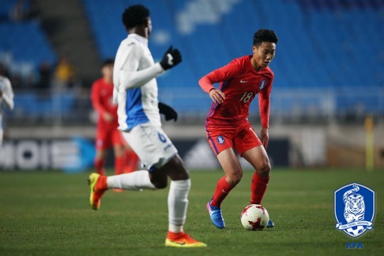 [풋볼리스트] 한준 기자= 미드필더 백승호(20, FC바르셀로나B)는 온두라스와 아디다스컵 U-20 국제축구대회에서 가장 먼저 교체된 선수다. 후반 20분 공격수 하승운이 들어오며 그라운드에서 내려왔다.
