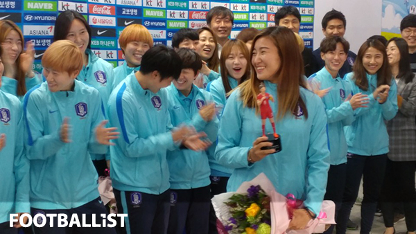 짐을 찾고 입국장에 등장한 것은 저녁 7시경이었다. 저녁 일정으로 인해 이용수 기술위원장은 결국 여자대표팀이 돌아오는 모습을 볼 수 없었다. 이 위원장은 자리에 없었지만, 여자 대표팀은 외롭지 않았다. 역대급 환대를 받았다. 방송 카메라와 사진 기자, 취재 기자 수십여명이 낮부터 긴 시간 여자대표팀이 돌아오는 길을 기다렸다. ‘2015 캐나다 여자월드컵’에서 사상 첫 16강 진출을 달성했을 때보다 많은 수의 취재진이 공항에 모였다.